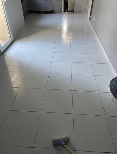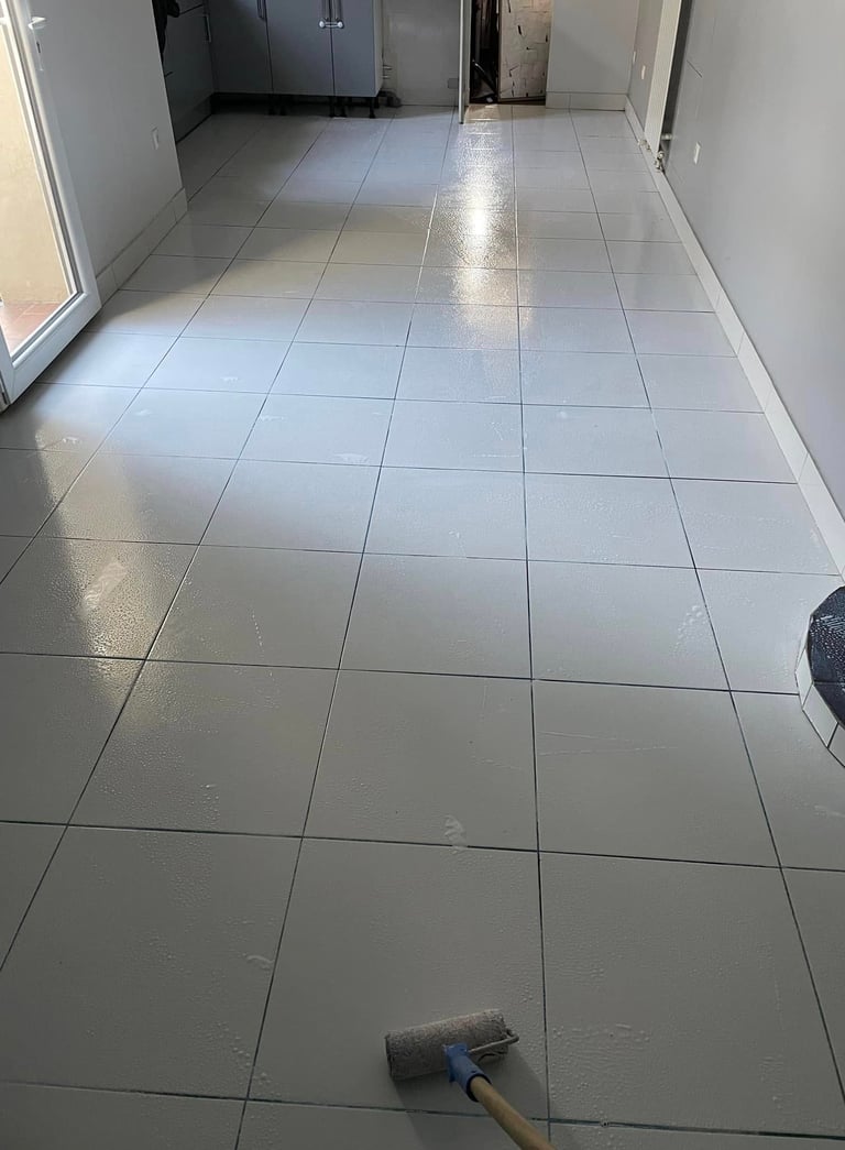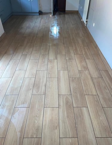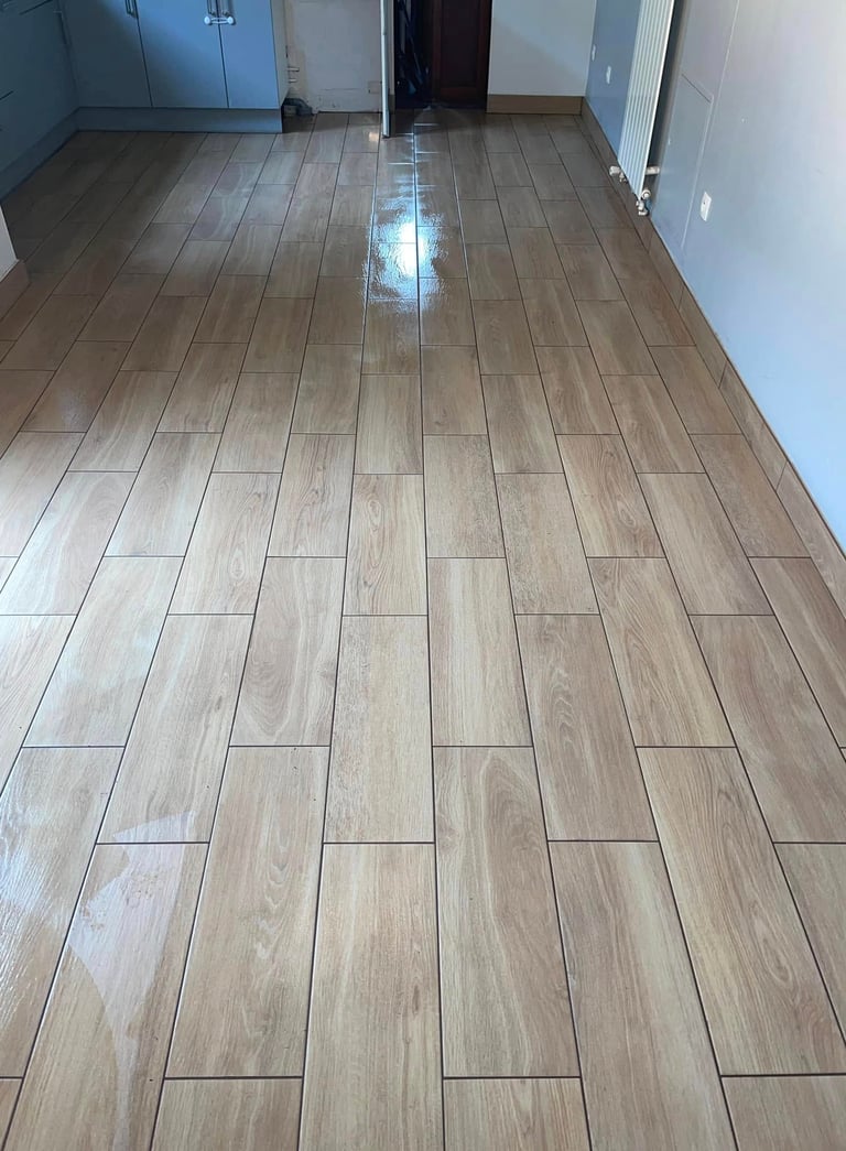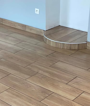 Avant l’intervention, le sol était recouvert d’un carrelage blanc classique à joints larges, qui manquait de chaleur et de caractère. Le choix s’est porté sur un carrelage effet bois. Ce revêtement combine l’esthétique du bois avec la durabilité du carrelage.