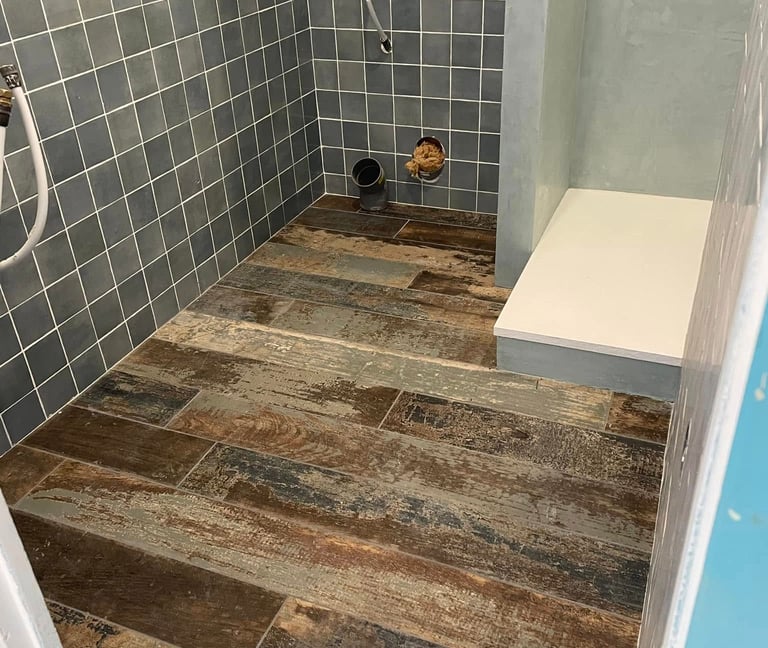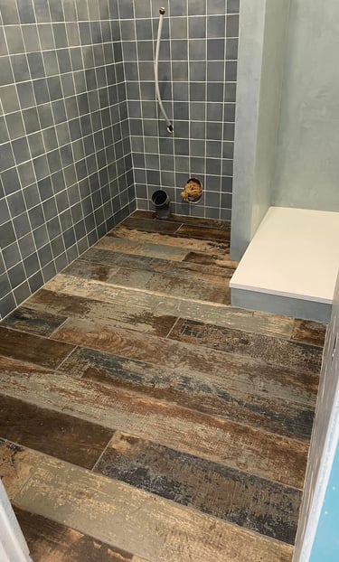 Création d’une douche sur-mesure à Dijon avec finitions soignées et carrelage imitation bois