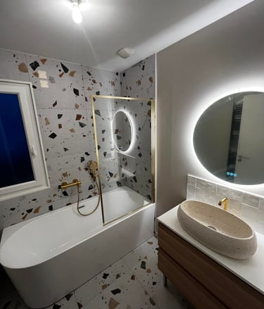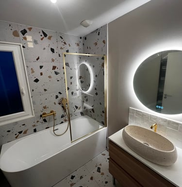 Changer la configuration d’une salle de bain peut améliorer considérablement le confort au quotidien. Nous réalisons la dépose d’anciens équipements (baignoire, bac à douche) et installons une nouvelle douche ou baignoire à l’opposé de la pièce, en tenant compte des contraintes techniques (évacuation, pente, étanchéité...).