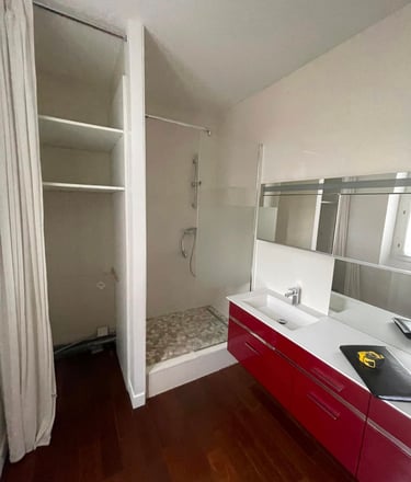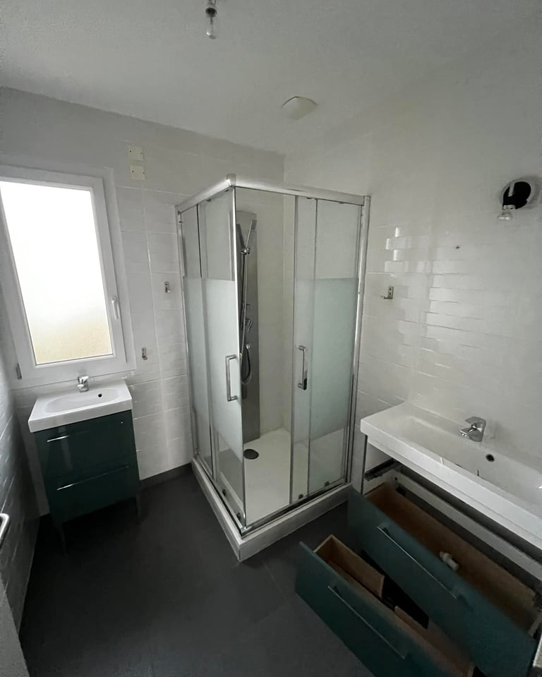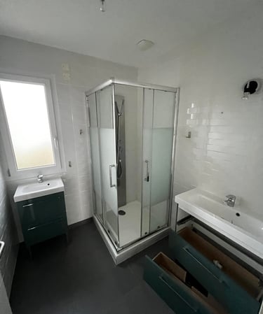 Initialement équipée d’une douche peu fonctionnelle et d’un mobilier dépassé, cette salle de bain a été entièrement repensée pour offrir un espace de détente moderne et lumineux.