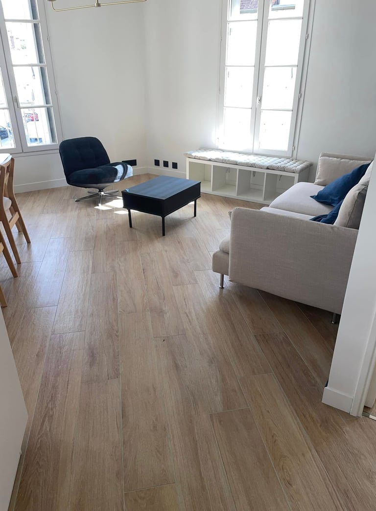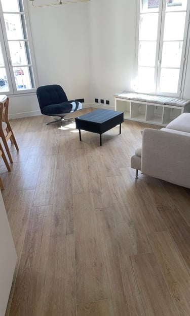 Ce projet illustre la transformation intégrale d’un espace grâce à la pose d’un parquet en chêne massif, alliant esthétique et durabilité. Les anciennes lames usées ont été déposées, laissant place à une préparation minutieuse du support afin d’assurer une installation parfaite.